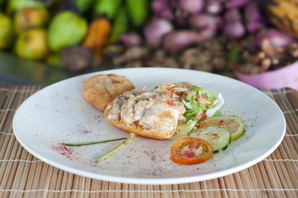 Grenadian crab back is a true seafood lover’s delight. This local favorite features crab meat seasoned with spring onions, sweet peppers, garlic, and a spicy cream sauce. The seasoned meat is then stuffed back into the cleaned-out shell of a land crab and topped with baked breadcrumbs. The result is a flavorful and visually appealing dish that perfectly captures the essence of Grenadian cuisine.