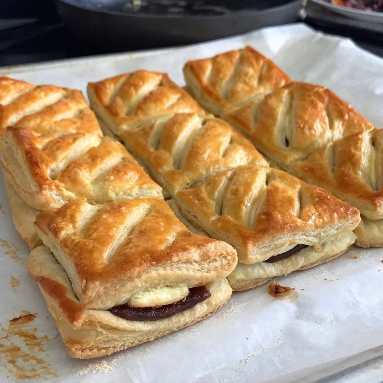 - Puff pastry or phyllo dough provides a crisp, light exterior that gives way to the soft, fruity guava filling.