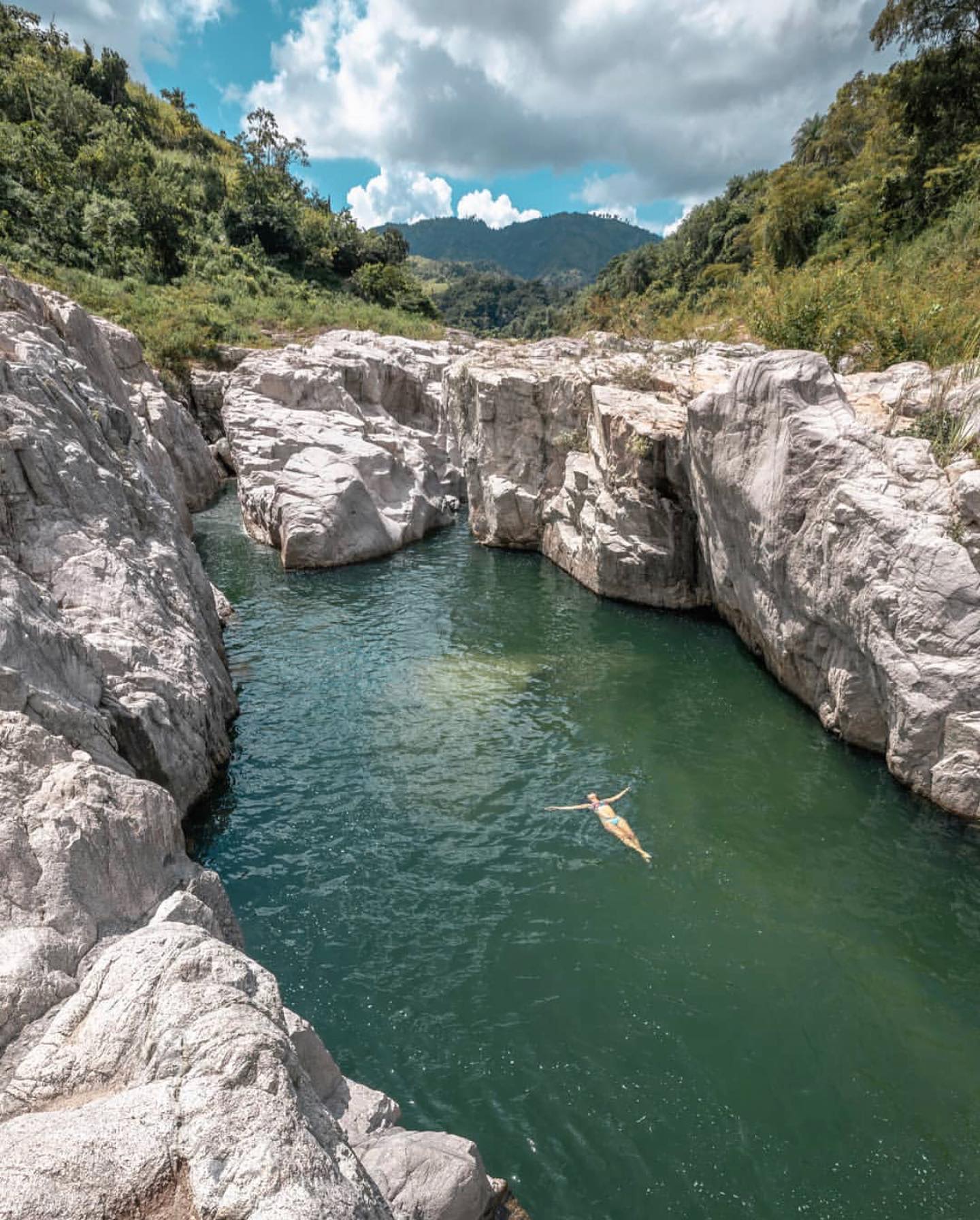 Nestled amidst the rugged terrain of Utuado lies the breathtaking Cañón Blanco, a natural wonder that will leave you spellbound. A short hike from the parking area unveils a landscape straight out of a prehistoric era, where white, ancient-looking rocks form a striking contrast against the crystal-clear waters of the Río Caonillas.